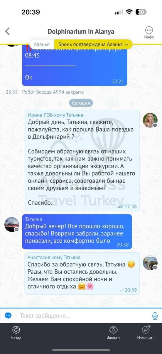 Турция — достаточная зарегулированная законами страна, особенно это касается туризма. Если у организаторов не будет лицензии на осуществление туристической деятельности. Именно поэтому на некоторые экскурсии мы можем у вас попросить данные или фото ваучеров и паспортов, это касается морских экскурсий, индивидуальных программ и некоторых групповых, если для этого требуется выезжать из города.