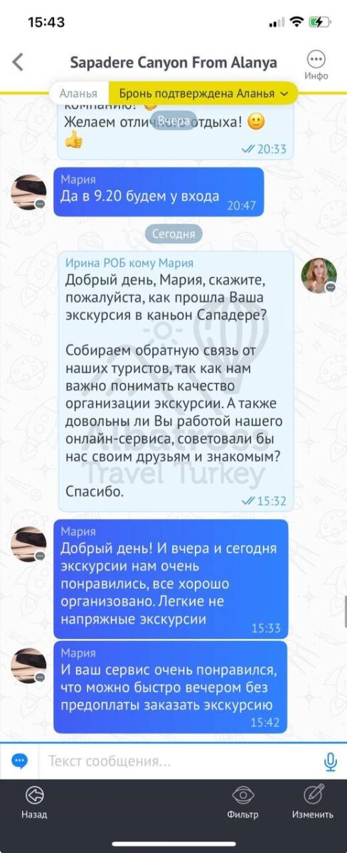 Добрый день,всё было чудесно! Работой онлайн-сервиса довольна. Команда была веселой,виды на каньон потрясающие.