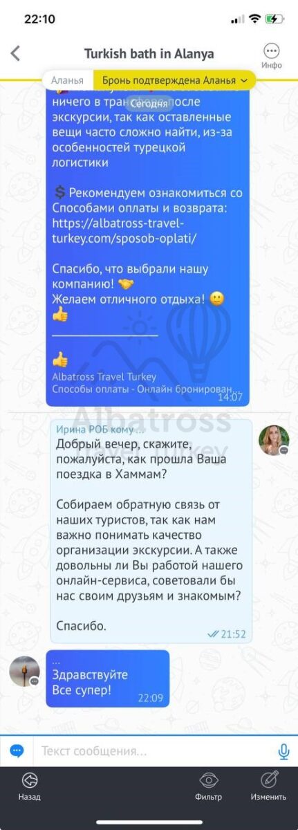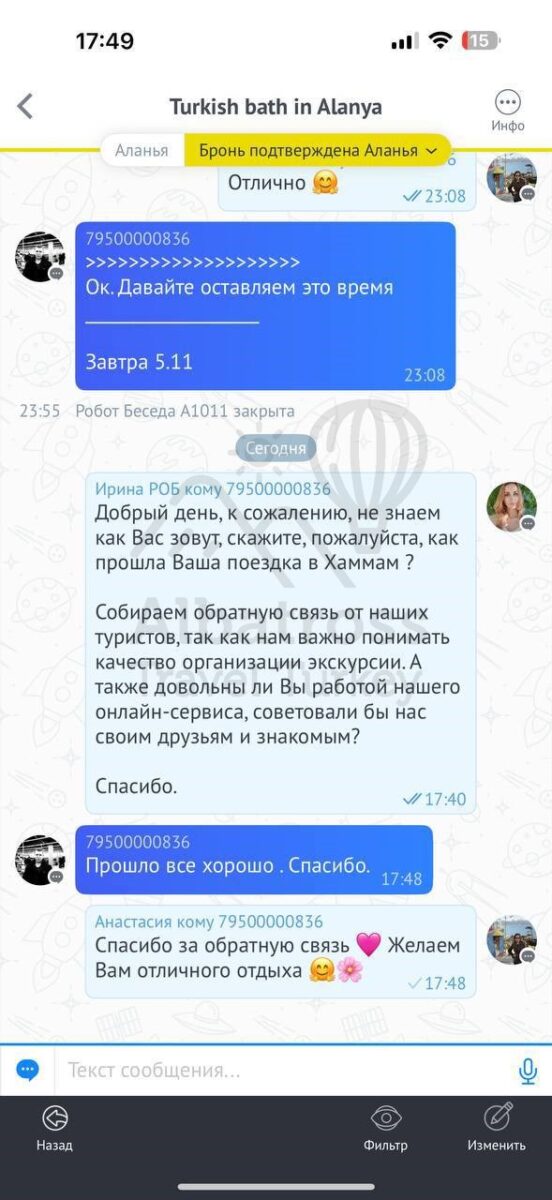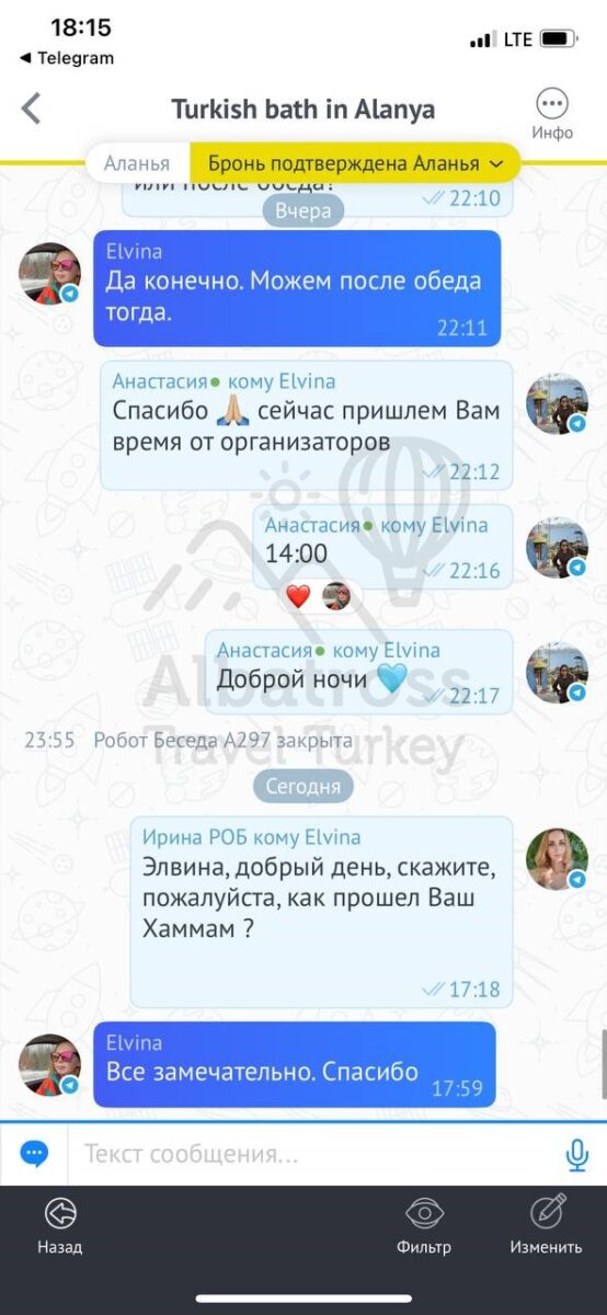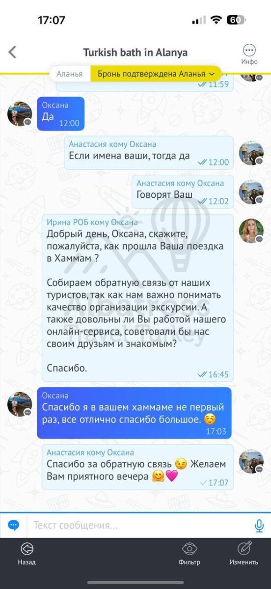 Спасибо я в вашем хаммаме не первый раз, все отлично спасибо большое
