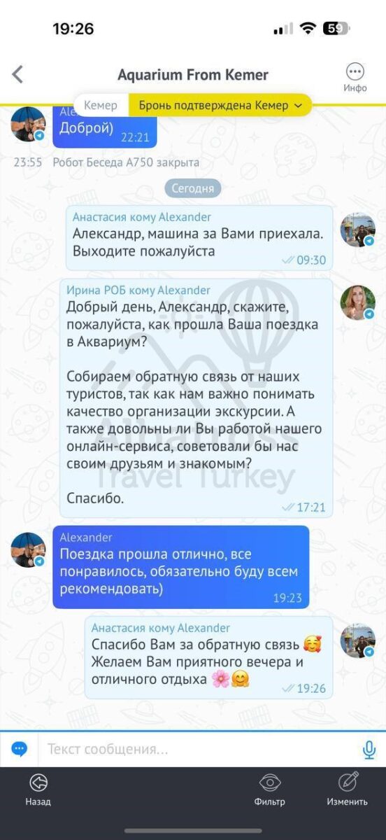 Поездка прошла отлично, все понравилось, обязательно буду всем рекомендовать)