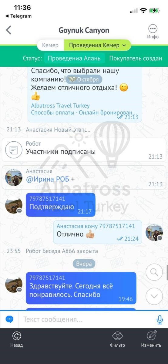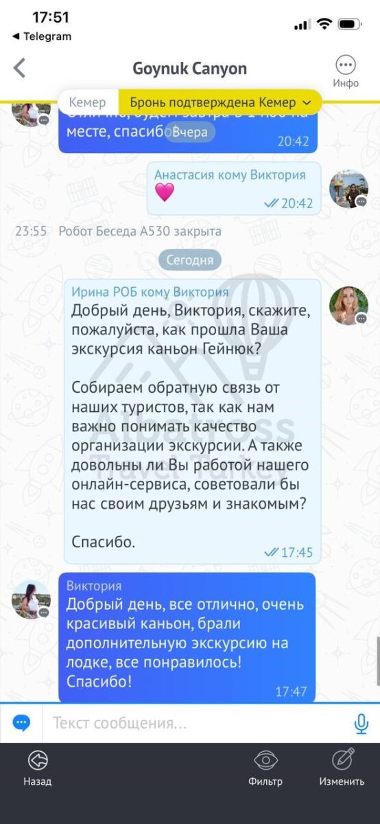 Добрый день, все отлично, очень красивый каньон, брали дополнительную экскурсию на лодке, все понравилось! Спасибо!