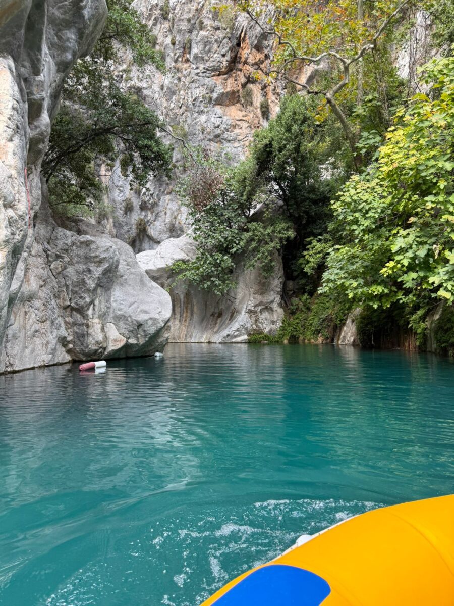 Экскурсия понравилась! Забрали у отеля (нас 5 чел+ коляска(2 взр+3 реб), комфортно довезли до входа к кассам каньона! Там есть допы зиплайн, медленный спуск на лодке и еще что-то — это по 25$€ либо 1100 лир, есть еще комбо 2 услуги по 45€$ либо 1900 лир. Если не взяли никаких допов, то пешком идете много км по сложной каменистой дороге. На экскурсию дается 3-4 часа. Мы приехали в 10:45, а уехали в 13:45. Мы брали комбо( зип+лодка), нас довезли на джипах до лодки и отвезли обратно на зиплайн. Впечатлений куча. Еще был небольшой казус( мы не рассчитали деньги и нам не хватило, наш гид за нас доплатил и деньги мы ему отдали уже у отеля) отличная клиентоориентированность!!!