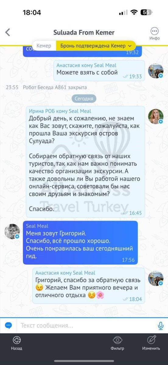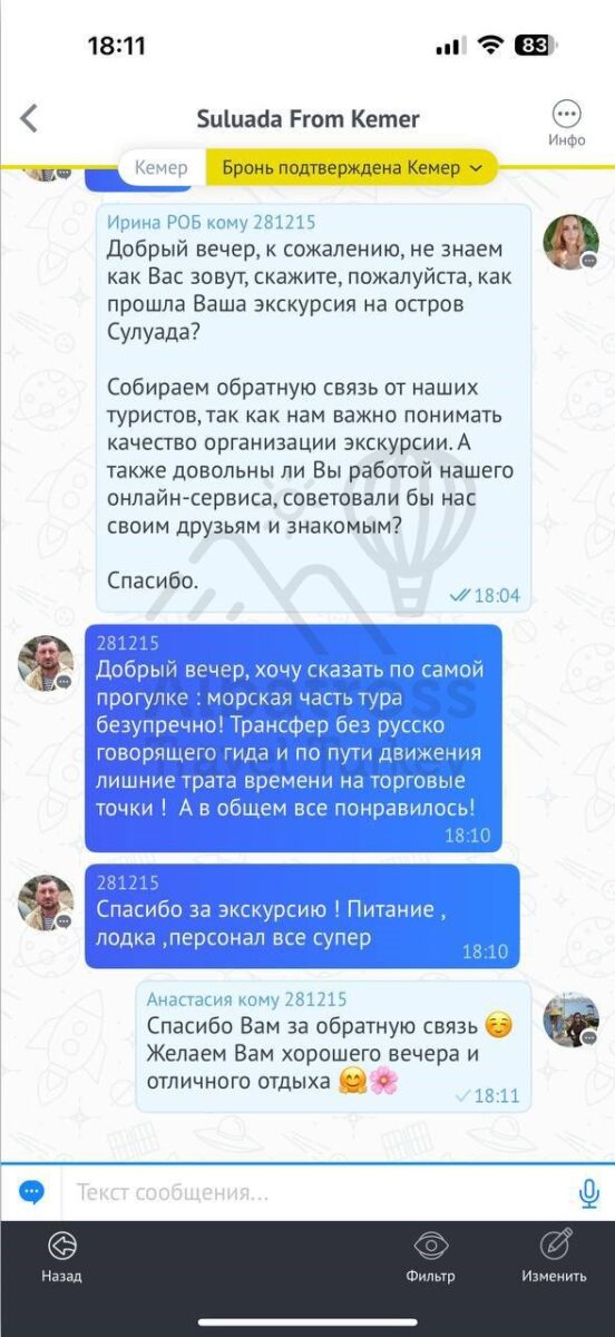 Турция — достаточная зарегулированная законами страна, особенно это касается туризма. Если у организаторов не будет лицензии на осуществление туристической деятельности. Именно поэтому на некоторые экскурсии мы можем у вас попросить данные или фото ваучеров и паспортов, это касается морских экскурсий, индивидуальных программ и некоторых групповых, если для этого требуется выезжать из города.