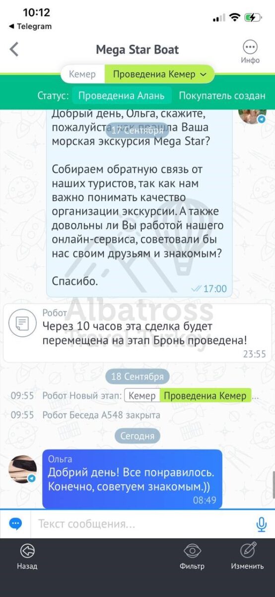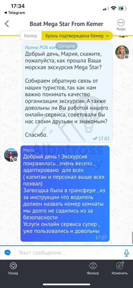 Добрый день ! Экскурсия понравилась , очень весело , адаптировано для всех ( капитан и персонал выше всех похвал)
